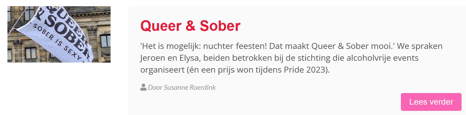'Met de campagne 'Sober is Sexy' willen we laten zien dat nuchterheid een volwaardig en zichtbaar onderdeel kan zijn van het queer leven. De campagne draait om zichtbaarheid en het doorbreken van clichés. Ook met een 0.0 kan je tot 04.00 uur in de club dansen, diepgaande gesprekken voeren, flirten, vieren en aanwezig zijn in alles wat het leven brengt.'