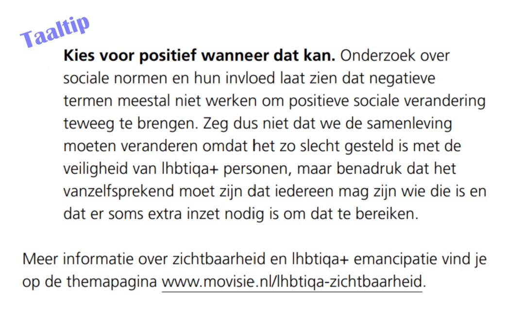 Lees ook: Vijf vragen over genderinclusief taalgebruik: Movisie.
