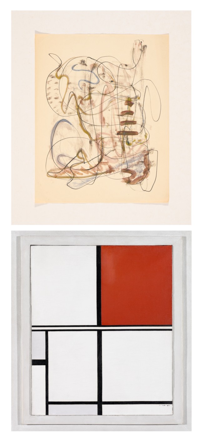 Beeld rechts: Marlow Moss, schets zonder titel, ongedateerd. Kunstmuseum Den Haag. Foto: Thijs ter Hart.